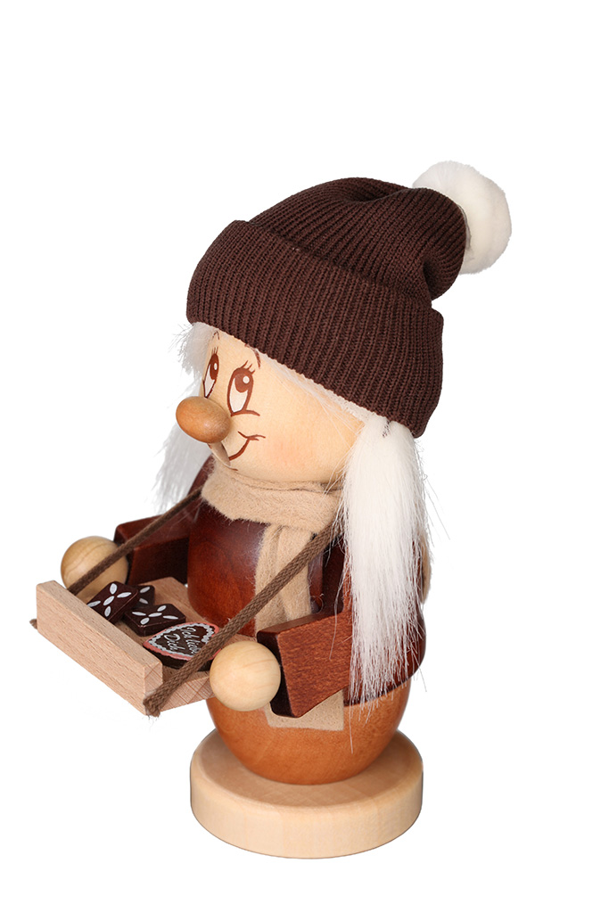 Das kleine Wichtelmädchen bietet auf dem Weihnachtsmarkt ganz traditionell ihre köstlichen Gebäcke an. Möchten Sie ihr nicht gleich am liebsten einige Leckereien abkaufen?